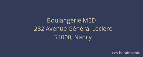Voici les horaires de Boulangerie MED situé à Nancy,