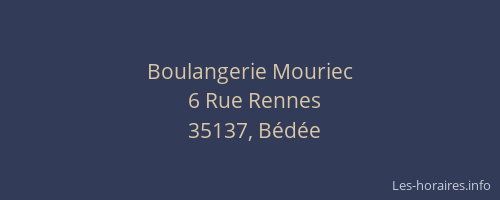 Voici les horaires de Boulangerie Mouriec situé à Bédée,