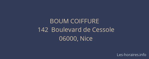 Voici les horaires de BOUM COIFFURE situé à Nice,