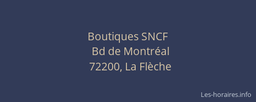Voici les horaires de Boutiques SNCF situé à La Flèche,