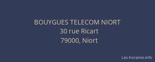 Voici les horaires de BOUYGUES TELECOM NIORT situé à Niort,