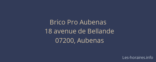 Voici les horaires de Brico Pro situé à Aubenas,