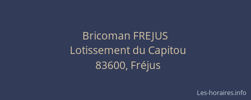 Voici les horaires de Bricoman FREJUS situé à Fréjus,