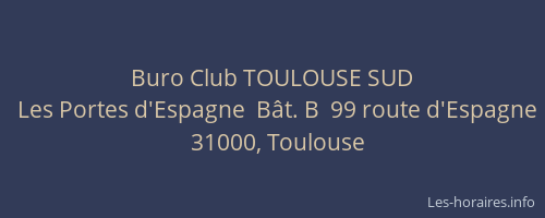 Voici les horaires de Buro Club TOULOUSE SUD situé à Toulouse,