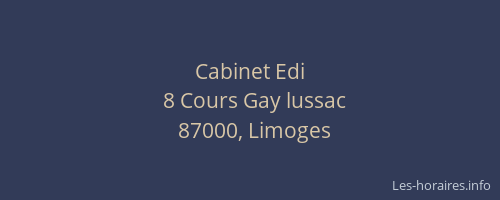Vous pouvez renseigner les horaires Cabinet Edi situé à Limoges,