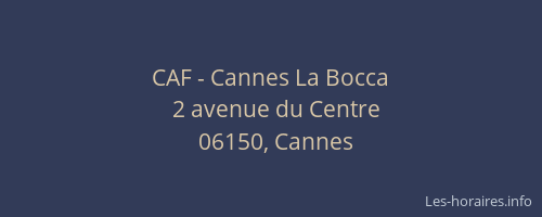 Vous pouvez renseigner les horaires CAF - La Bocca situé à Cannes,