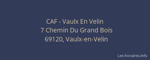 Voici les horaires de CAF - Vaulx En Velin situé à Vaulx-en-Velin,