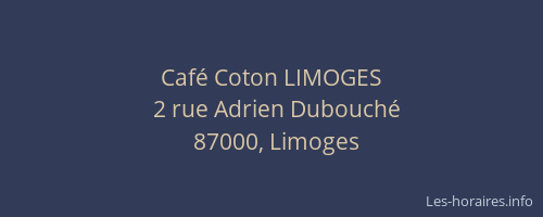 Voici les horaires de Café Coton LIMOGES situé à Limoges,