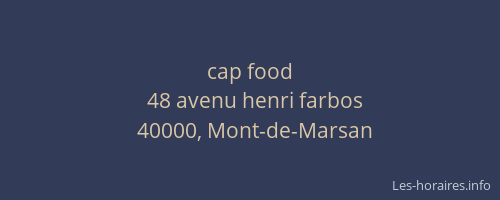 Voici les horaires de cap food situé à Mont-de-Marsan,