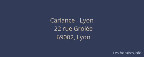 Voici les horaires de Carlance - situé à Lyon 2ème,