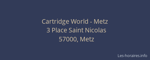 Voici les horaires de Cartridge World - situé à Metz,