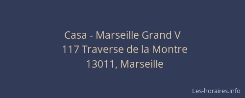 Voici les horaires de Casa - Grand V situé à Marseille,