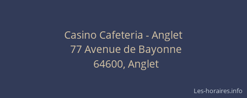 Voici les horaires de Casino Cafeteria - situé à Anglet,