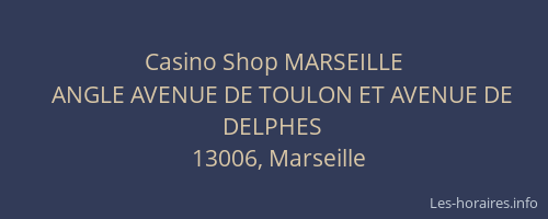 Voici les horaires de Casino Shop MARSEILLE situé à Marseille 6ème,