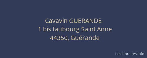 Voici les horaires de Cavavin GUERANDE situé à Guérande,