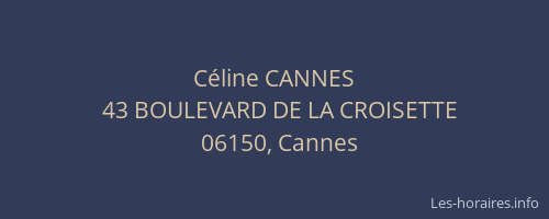 Voici les horaires de Céline CANNES situé à Cannes,