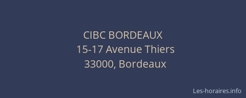 Voici les horaires de CIBC BORDEAUX situé à Bordeaux,