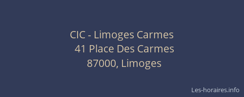 Voici les horaires de CIC - Carmes situé à Limoges,