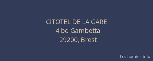 Voici les horaires de CITOTEL DE LA GARE situé à Brest,