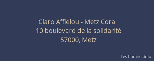 Voici les horaires de Claro Afflelou - Cora situé à Metz,