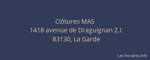 Voici les horaires de Clôtures MAS situé à La Garde,