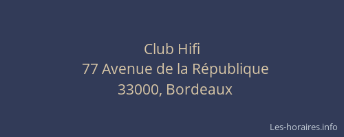 Voici les horaires de Club Hifi situé à Bordeaux,