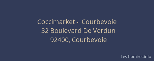 Voici les horaires de Coccimarket - situé à Courbevoie,