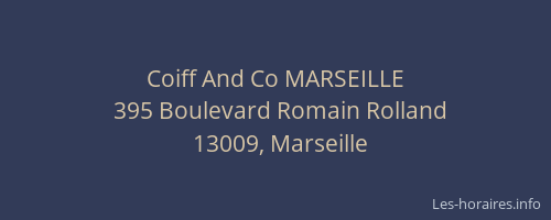 Voici les horaires de Coiff And Co MARSEILLE situé à Marseille 9ème,