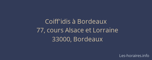 Voici les horaires de Coiff'idis à situé à Bordeaux,