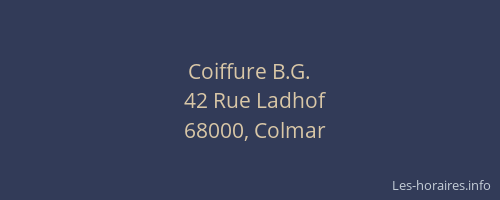 Voici les horaires de Coiffure B.G. situé à Colmar,