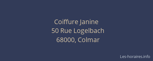 Voici les horaires de Coiffure Janine situé à Colmar,