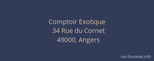 Voici les horaires de Comptoir Exotique situé à Angers,