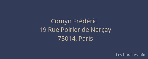 Voici les horaires de Comyn Frédéric situé à Paris 14ème,