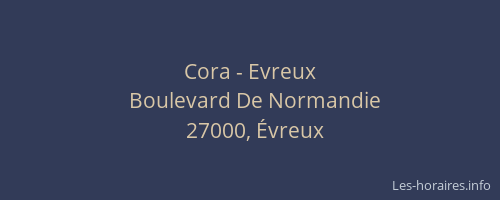 Voici les horaires de Cora - Evreux situé à Évreux,