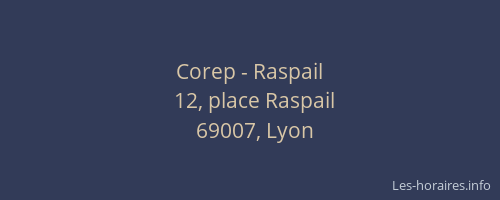 Voici les horaires de Corep - Raspail situé à Lyon 7ème,