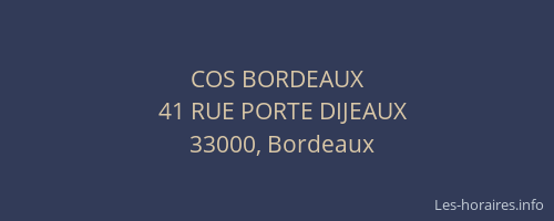 Voici les horaires de COS BORDEAUX situé à Bordeaux,