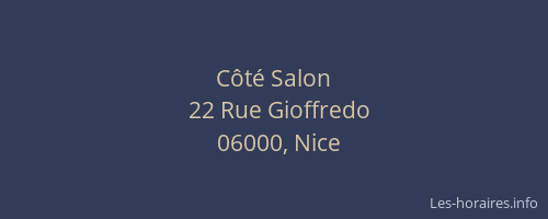Voici les horaires de Côté Salon situé à Nice,