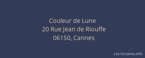 Voici les horaires de Couleur de Lune situé à Cannes,