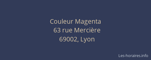 Voici les horaires de Couleur Magenta situé à Lyon 2ème,