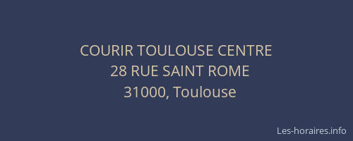 Voici les horaires de COURIR TOULOUSE CENTRE situé à Toulouse,