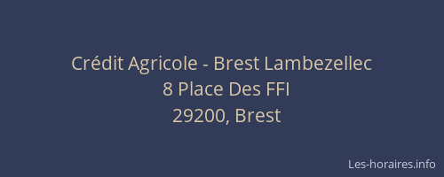Voici les horaires de Crédit Agricole - Lambezellec situé à Brest,