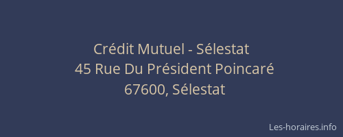 Voici les horaires de Crédit Mutuel - situé à Sélestat,