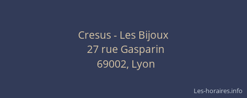 Voici les horaires de Cresus - Les Bijoux situé à Lyon 2ème,