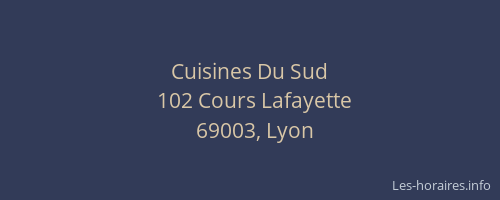 Voici les horaires de Cuisines Du Sud situé à Lyon 3ème,