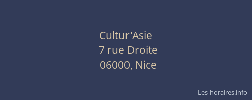 Vous pouvez renseigner les horaires Cultur'Asie situé à Nice,