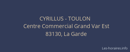 Voici les horaires de CYRILLUS - TOULON situé à La Garde,