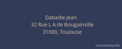 Voici les horaires de Dabadie Jean situé à Toulouse,