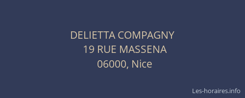 Voici les horaires de DELIETTA COMPAGNY situé à Nice,