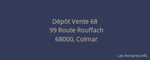 Voici les horaires de Dépôt Vente 68 situé à Colmar,