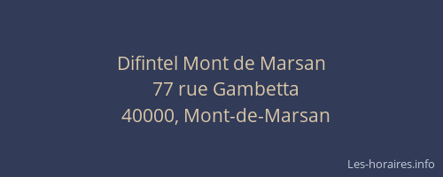 Voici les horaires de Difintel Mont de Marsan situé à Mont-de-Marsan,